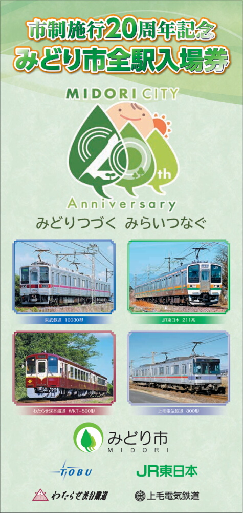 群馬県みどり市は今年20周年。これを記念して、市内全駅の入場券をセットした記念きっぷを発行します。